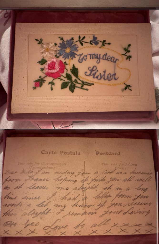 I just find it so fascinating to see how they all lived their lives. I think certain things, such as newspapers, can really help to piece together a story. It is so interesting, being able to read about things your ancestors did in the newspaper. I think the most fascinating thing I have found so far while doing my research – physically – is some postcards. I found a postcard written to my 3rd Great-Grandmother Isabella, in 1914. It was from her brother George, he wrote to her to see how her and her family were. The postcard itself was beautiful, with lace detailing. It just feels so magnificent to hold and read a postcard that was written 110 years ago. Finding things like that are truly such a blessing and I feel so lucky. As you can imagine, it is kept in a very safe place. I have attached photos below!