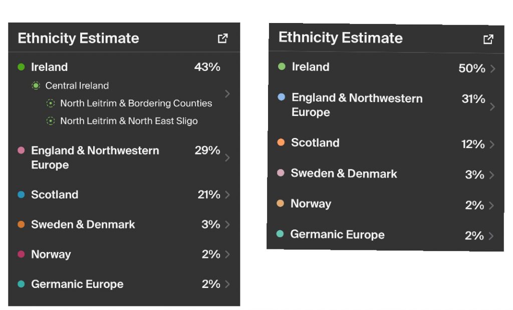 According to my Ancestry DNA test – I am 50% Irish, 31% English & Northwestern European, 12% Scottish, 3% Swedish & Danish, 2% Norwegian & 2% Germanic European. Although, my original results were 43% Irish, 29% English and Northwestern European, 21% Scottish, 3% Swedish & Danish, 2% Norwegian and 2% Germanic European.